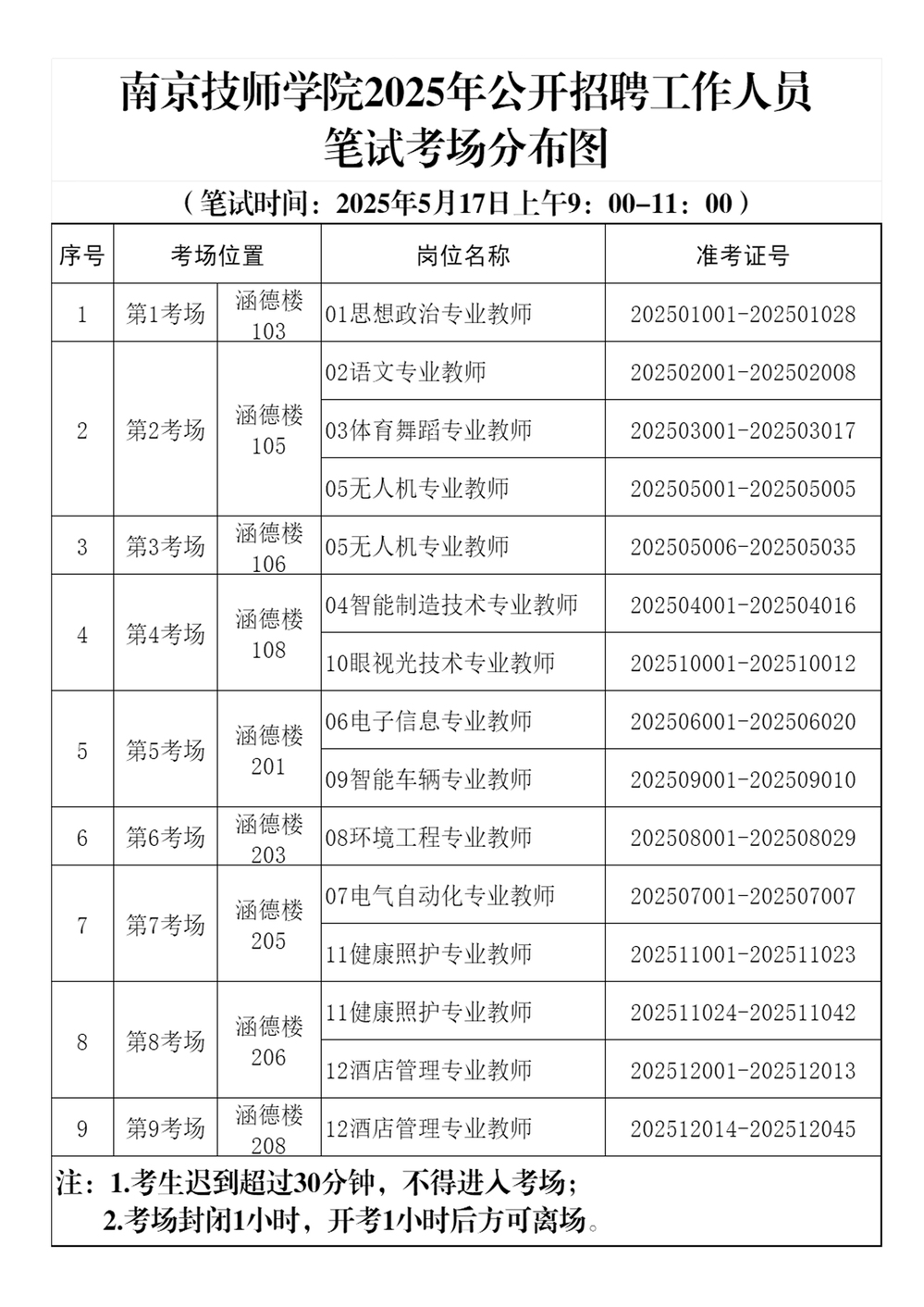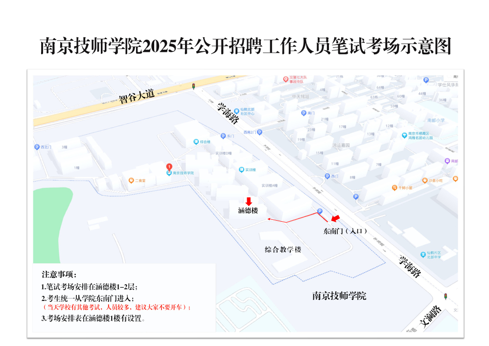 南京技师学院2025年公开招聘工作人员笔试考场分布图